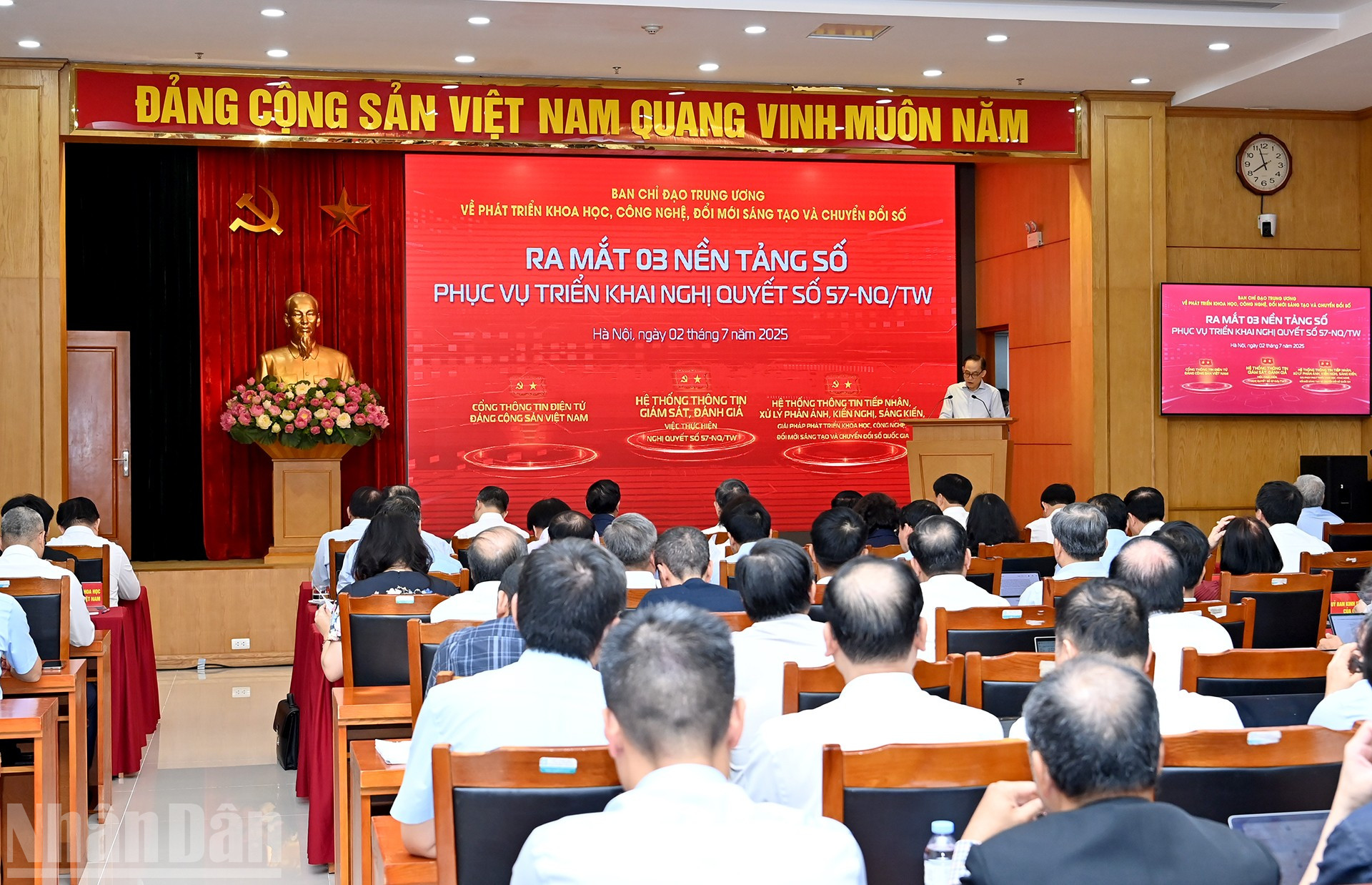Sáng 02/7/2025, tại Hà Nội, Ban Chỉ đạo Trung ương về phát triển khoa học, công nghệ, đổi mới sáng tạo và chuyển đổi số đã tổ chức Hội nghị sơ kết công tác 6 tháng đầu năm, triển khai nhiệm vụ trọng tâm 6 tháng cuối năm 2025; đồng thời ra mắt 3 nền tảng số phục vụ trực tiếp việc triển khai Nghị quyết số 57-NQ/TW. Tổng Bí thư Tô Lâm cùng các đồng chí lãnh đạo Đảng, Nhà nước dự và thực hiện nghi thức khai trương.