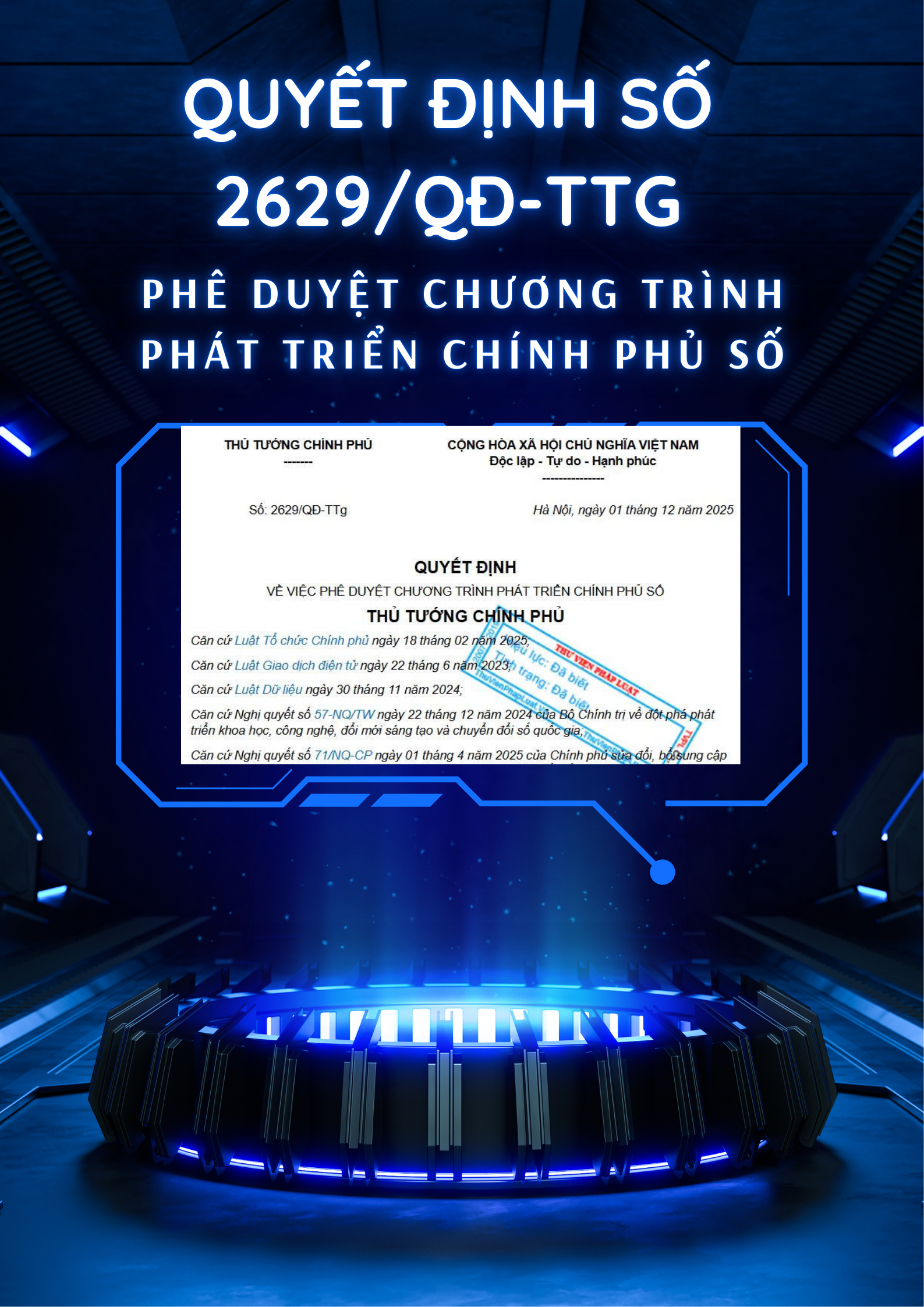 Ngày 1/12/2025, Phó Thủ tướng Nguyễn Chí Dũng ký thay Thủ tướng Chính phủ ban hành Quyết định số 2629/QĐ-TTg phê duyệt Chương trình phát triển Chính phủ số (Chương trình). Văn bản xác định phát triển dịch vụ số theo hướng bao trùm, thuận tiện, đặt người sử dụng ở vị trí trung tâm. Hệ sinh thái dịch vụ được xây dựng thống nhất, bảo đảm không ai bị bỏ lại phía sau.